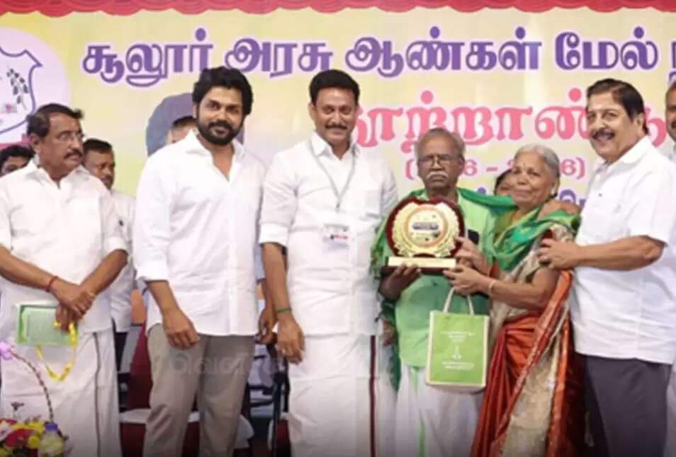 நடிகர் சிவகுமார் படித்த கோவை மாவட்டம் சூலூர் அரசு ஆண்கள் மேல்நிலைப் பள்ளியின் 100ம் ஆண்டு விழாவை ஒட்டி சிறப்பு விருந்தினராக பங்கேற்ற நடிகர் கார்த்தி பள்ளி வளர்ச்சிக்காக ரூ.5 லட்சம் நன்கொடை வழங்கினார். நடிகர் சிவகுமார் தலைமையில் நடைபெற்ற பள்ளியின் ஆண்டு விழாவில் பள்ளிக்கல்வித்துறை அமைச்சர் அன்பில் மகேஸ் உள்ளிட்டோர் பங்கேற்றனர். விழாவில், பள்ளியில் அதிக மதிப்பெண்கள் பெற்ற மாணவ, மாணவிகளுக்கு சான்றிதழ்கள் மற்றும் பரிசுத்தொகைகள் வழங்கப்பட்டன.