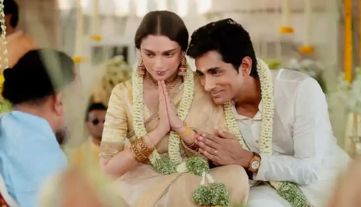 நடிகர் சித்தார்த்துக்கும், நடிகை அதிதி ராவுக்கும் தெலுங்கானாவில் இந்து முறைப்படி திருமணம் நடந்து முடிந்துள்ளது. நடிகர் சித்தார்த் மற்றும் நடிகை அதிதி ராவ் ஹைதாரி இருவரும் திருமணம் செய்துகொண்டதாக புகைப்படங்களை இன்ஸ்டாகிராமில் பதிவிட்டு, ரசிகர்களுக்கு இன்ப அதிர்ச்சி கொடுத்துள்ளனர். சித்தார்த்தும், அதிதி ராவும் கடந்த 2021 ஆம் ஆண்டு 'மஹா சமுத்திரம்' படத்தில் இணைந்து நடித்தபோது காதலிக்க தொடங்கினர். இவர்களது காதல் திருமணம் வரை செல்லுமா என்று ரசிகர்களிடையே பெரும் எதிர்பார்ப்பு இருந்தது.இந்த நிலையில், கடந்த மார்ச் மாதம் இருவருக்கும் நிச்சயதார்த்தம் முடிந்ததாக சோசியல் மீடியாவில் தெரிவித்தனர். இதனை தொடர்ந்து இன்று இருவரும் தெலுங்கானாவில் எளிமையான முறையில் திருமணம் செய்துகொண்டுள்ளனர். அதுகுறித்த புகைப்படங்களை இருவரும் இன்ஸ்டாகிராமில் பதிவிட்டுள்ளனர். அந்த பதிவில், "நீ என் சூரியன், என் சந்திரன் மற்றும் நீதான் எனது எல்லா நட்சத்திரங்கள்'' என்று காதல் ரசம் பொங்க, சித்தார்த் அதிதியின் மீதான அன்பை வெளிப்படுத்தியுள்ளார்.
