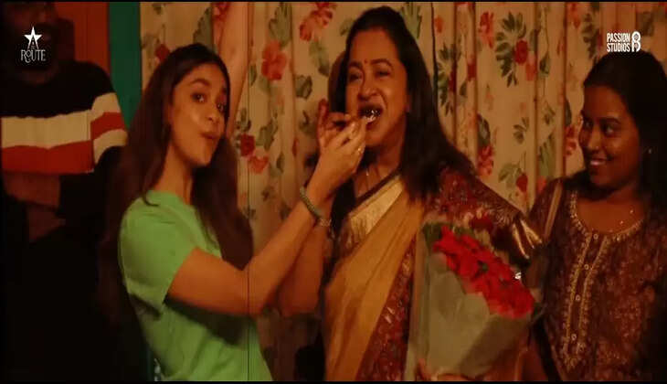 நடிகை ராதிகாவின் 45 ஆண்டு திரைப் பயணம்... கேக் வெட்டி கொண்டாடிய நடிகை கீர்த்தி சுரேஷ் !
