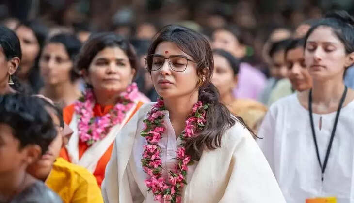 இந்நிலையில் கோவையிலுள்ள ஈஷா யோகா மையத்தில் தியானம் செய்யும் புகைப்படங்களை நடிகை சமந்தா வெளியிட்டுள்ளார். அதில் வெள்ளை நிற உடையில் கழுத்தில் மாலை அணிந்தவாறு மற்ற பக்தர்களுடன் அவர் அமர்ந்துள்ளார்.