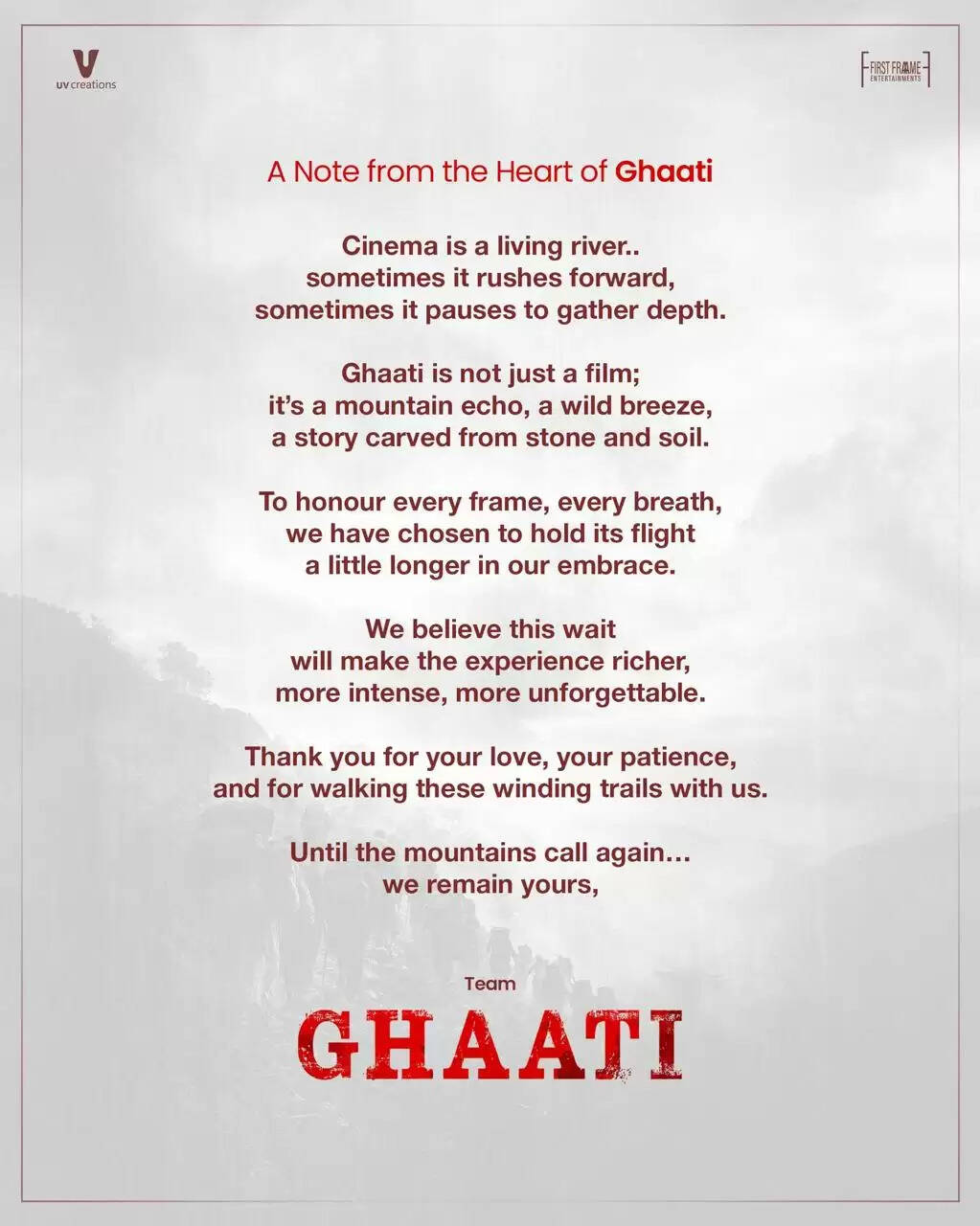 பாகுபலி படத்திற்கு பிறகு ஒரு சில படங்களில் மட்டுமே நடித்துள்ள அனுஷ்கா, Miss ஷெட்டி MR பொலிஷெட்டி திரைப்படத்தின் வெற்றியை தொடர்ந்து அடுத்ததாக காட்டி (Ghaati) என்ற திரைப்படத்தில் நடித்துள்ளார். இப்படத்தை கிரிஷ் ஜகர்லமுடி இயக்கியுள்ளார். யுவி கிரியேஷன்ஸ் நிறுவனம் தயாரித்துள்ள இந்தப்படத்தில் விக்ரம் பிரபு, ரம்யா கிருஷ்ணன் மற்றும் பலர் நடித்துள்ளனர். இந்தப்படத்தின் ஃபர்ஸ்ட் லுக் மற்றும் கிளிம்ப்ஸ் வீடியோக்களை படக்குழு கடந்த ஆண்டே வெளியிட்டது. கிளிம்ப்ஸ் வீடியோவுக்கு ரசிகர்களிடம் பெறும் வரவேற்பை பெற்றது. இந்தப்படம் மூலம் விக்ரம் பிரபு நேரடியான தெலுங்கு படத்தில் அறிமுகமாகிறார் என்பது குறிப்பிடத்தக்கது.