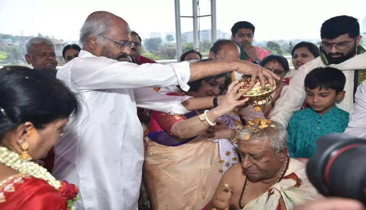 இந்நிலையில் ரஜினியின் அண்ணன் சத்யநாராயண் ராவ், 80வது பிறந்தநாள் நேற்று கொண்டாடினார். இதையொட்டி அவருக்கு நேற்று சதாபிஷேகம் நடைபெற்றது. அதோடு சத்யநாராயணாவின் மகன் ராமகிருஷ்ணாவும் தனது 60வது பிறந்தநாளை கொண்டாடினார். இந்த விழாவில் தனது மனைவி லதாவுடன் நடிகர் ரஜினிகாந்த் கலந்துக்கொண்டார். அப்போது சதாபிஷேக விழாவில் சத்யநாராயணனை தங்க காசுகளால் நனைய வைத்தார்.