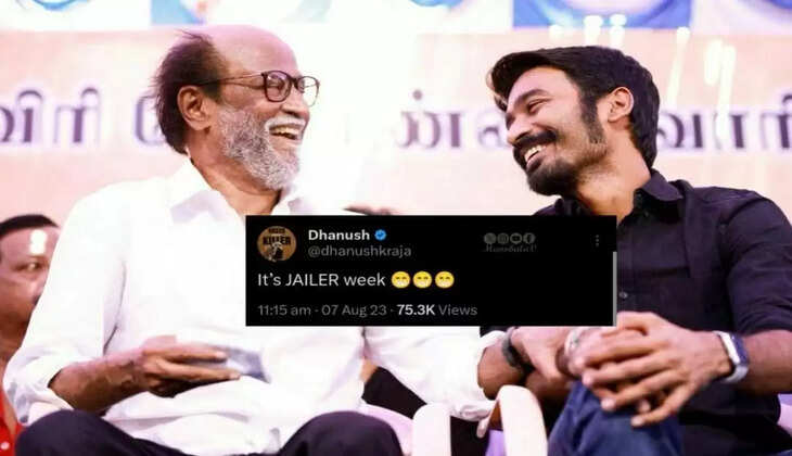 அதாவது தனுஷ் சூப்பர் ஸ்டார் ரசிகர் என நாம் அனைவருக்கும் தெரியும். இந்த நிலையில் தனது சமூகவலைதள பக்கத்தில் “It’s JAILER week” என பதிவிட்டுள்ளார். இதனை பார்த்த ரசிகர்கள் தனுஷ் தனது மனைவியை பிரிந்தாலும் மாமனார் மீதுள்ள பாசம் குறையவில்லை என கூறிவருகின்றனர். தனுஷின் இந்த வேகத்தை பார்த்தால் லிங்கா, கபாலி, காலா போன்ற படங்களை ஃபர்ஸ்ட் டே ஃபர்ஸ்ட் ஷோ பார்த்ததை போல இந்த படத்திற்கும் செல்வார் என எதிர்பார்க்கப்படுகிறது.