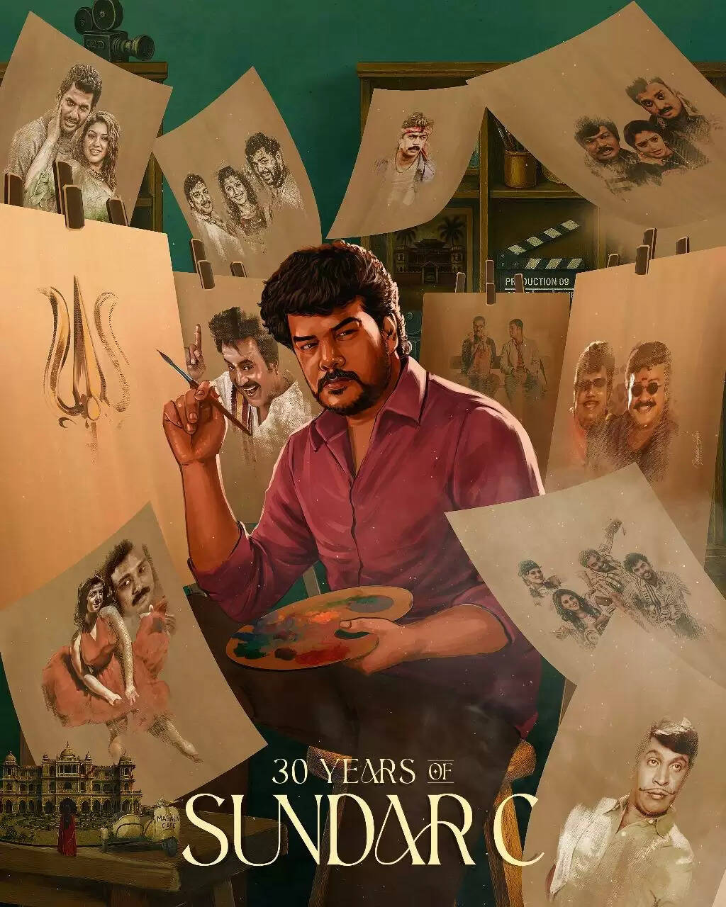 இந்த நிலையில், சுந்தர். சி திரைத்துறைக்கு வந்து 30 ஆண்டுகள் நிறைவடைந்ததால் சிறப்பு போஸ்டர் வெளியிட்டுள்ளனர். சினிமாவில் 10 ஆண்டுகளைக் கடப்பதே பெரிய விஷயமாகப் பார்க்கப்படும் காலத்தில் மிகச் சிலரே நீண்டகாலம் தாக்குப்பிடிக்கின்றனர்.