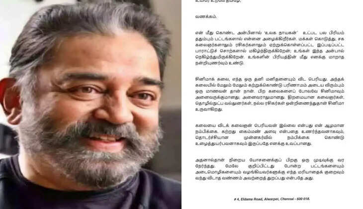 இந்நிலையில் இன்று அவர் வெளியிட்டுள்ள அறிக்கையில், “என் மீது கொண்ட அன்பினால் ‘உலக நாயகன்’ உட்பட பல பிரியம் ததும்பும் பட்டங்களால் என்னை அழைக்கிறீர்கள். மக்கள் கொடுத்து, சக கலைஞர்களாலும், ரசிகர்களாலும் ஏற்றுக்கொள்ளப்பட்ட இப்படிப்பட்ட பாராட்டு சொற்களால் மகிழ்ந்திருக்கிறேன். உங்கள் இந்த அன்பால் நெகிழ்ந்துமிருக்கிறேன். உங்களின் பிரியத்தின் மீது எனக்கு மாறாத நன்றியுண்ர்வும் உண்டு.