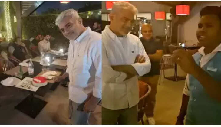 ரசிகர் அழகாக பாடுவதை புன்னகையுடன் வியந்து கேட்டு ரசித்த அஜித் அவரை பாராட்டினார். பின்னர் ரசிகரின் பெயரை கேட்க அவர் அஜித் என கூற, இருவரும் சிரித்தவாறு கட்டியணைத்தனர்.