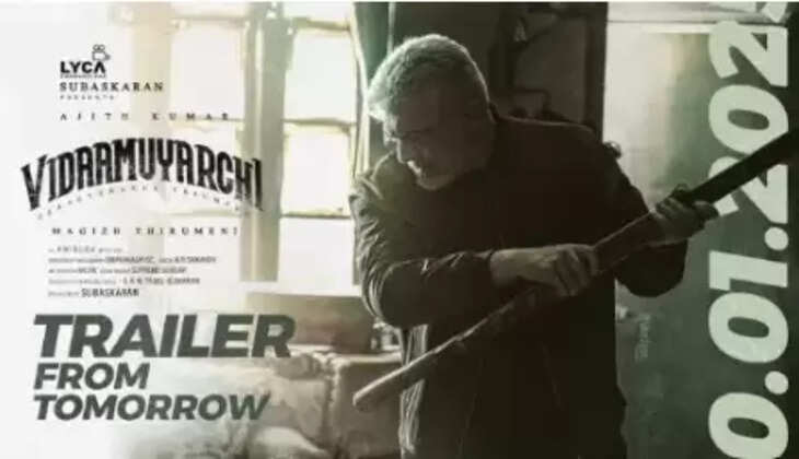நடிகர் அஜித் குமார் - இயக்குநர் மகிழ் திருமேனி கூட்டணியில் உருவாகி இருக்கும் படம் விடாமுயற்சி. அஜித் குமாருடன், ஆரவ், அர்ஜுன், திரிஷா, ரெஜினா கசான்ட்ரா, நிகில் நாயர் மற்றும் பலர் நடித்துள்ளனர். இந்த படத்திற்கு அனிருத் இசையமைத்துள்ளார். ஒளிப்பதிவு பணிகளை ஓம் பிரகாஷ் மேற்கொள்ள, படத்தொகுப்பு பணிகளை என்.பி. ஸ்ரீகாந்த் மேற்கொள்கிறார். லைகா நிறுவனம் இப்படத்தை தயாரித்துள்ளது. தமிழ், மலையாளம், தெலுங்கு, கன்னடம் ஆகிய மொழிகளில் பொங்கல் பண்டிகை அன்று இப்படம் வெளியாக உள்ளது. இப்படத்தின் டீசர் வெளியான நிலையில், இப்படத்தின் பர்ஸ்ட் சிங்கிள் சில நாட்களுக்கு முன் வெளியாகி மக்களிடம் நல்ல வரவேற்பை பெற்று வருகிறது. இந்நிலையில் படத்தின் டிரெய்லர் நாளை புத்தாண்டை முன்னிட்டு வெளியாகும் என படக்குழு போஸ்டர் வெளியிட்டு அறிவித்துள்ளது. இதனால் ரசிகர்கள் மிகவும் உற்சாகத்தில் உள்ளனர்.