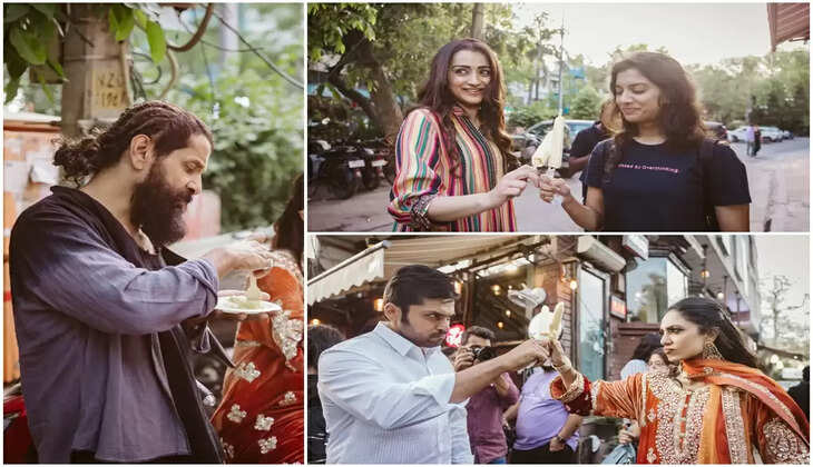 ஏற்கனவே சென்னை, கோவை உள்ளிட்ட தமிழக நகரங்களில் ரசிகர்களை பொன்னியின் செல்வன் குழுவினர் சந்தித்து படத்தின் அனுபவங்களை பகிர்ந்தனர். இந்நிலையில் டெல்லிக்கு ப்ரோமோஷனுக்காக பொன்னியின் செல்வன் படக்குழுவினரான விக்ரம், கார்த்தி, திரிஷா, ஜெயம் ரவி உள்ளிட்டோர் சென்றுள்ளனர். அங்கு கடை ஒன்றிற்கு சென்ற படக்குழுவினர் வெளியில் நின்று குல்பி சாப்பிடும் புகைப்படங்கள் வெளியாகியுள்ளது. அந்த புகைப்படத்தில் கார்த்தியும், ஐஸ்வர்ய லஷ்மியும் சோழர்கள் போன்று குல்பியில் சண்டைப்போடுவது ரசிகர்களின் கவனத்தை ஈர்த்துள்ளது.