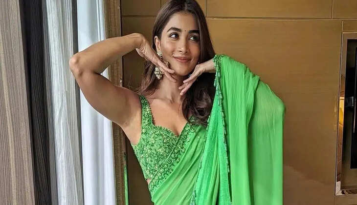 பச்சை நிற புடவையில் பளபளவென போஸ் கொடுத்து புகைப்படங்களை வெளியிட்டுள்ளார் நடிகை பூஜா ஹெக்டே.
