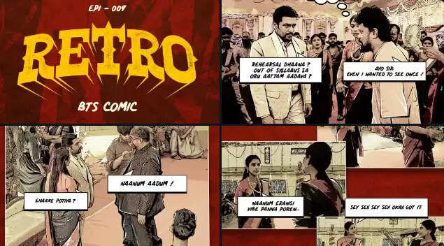 இப்பாடலில் சூர்யா பதட்டத்துடன் நடனமாடியுள்ளதாக ரசிகர்கள் கமெண்ட் செய்தனர். அதைத்தொடர்ந்து , கதாப்பாத்திரத்திற்காக சூர்யா அப்படி ஆடியதாகவும், ரிகர்சல் செய்த பொது ஆடிய வீடியோவை 'ரெட்ரோ' படக்குழு பகிர்ந்தது.தற்போது அந்த ஷூட்டிங் காட்சிகளை காமிக்ஸ் வடிவில் படக்குழு வெளியாகி உள்ளது.