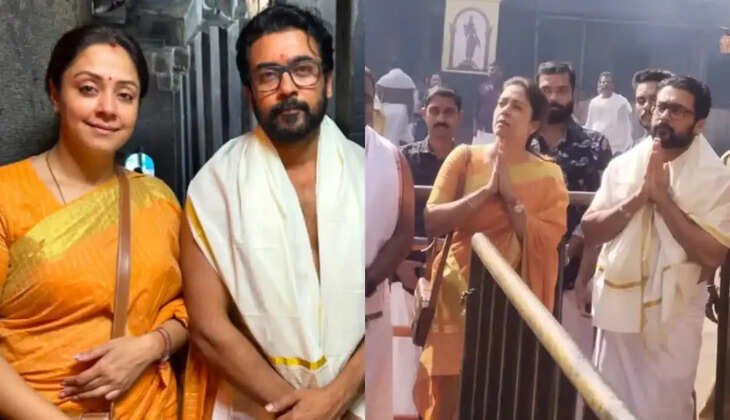 மூகாம்பிகை கோயிலில் சுவாமி தரிசனம் செய்த சூர்யா - ஜோதிகா ஜோடி!