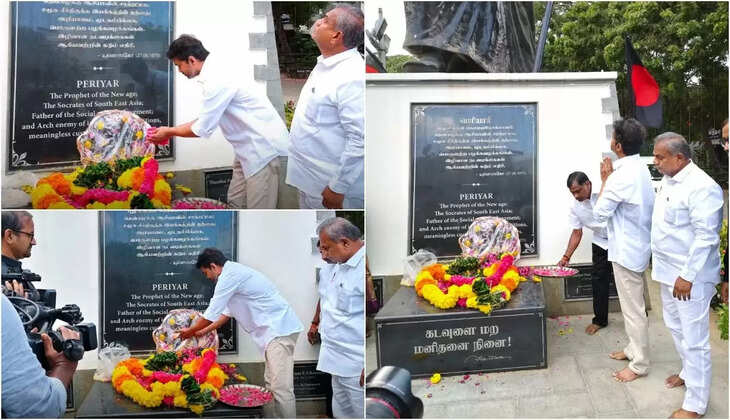 பெரியார் பிறந்த நாளை முன்னிட்டு நடிகரும், தமிழக வெற்றிக் கழகத்தின் தலைவருமான விஜய், சென்னை பெரியார் திடலில் உள்ள பெரியார் சிலைக்கு மரியாதை செலுத்தினார். விஜய் கட்சி தொடங்கிய பின் முதன்முறையாக கலந்துகொள்ளும் பொது நிகழ்வு இது என்பது கவனிக்கத்தக்கது.