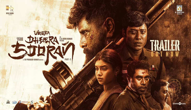 மதுரையை கதைக்களமாக கொண்டு உருவாக்கப்பட்டுள்ளது. 'வீர தீர சூரன்' படம் வரும் மார்ச் 27 ஆம் தேதி வெளியாகவுள்ளது. படத்தின் டிரெய்லரை படக்குழு நேற்று வெளியிட்டது. அதிரடி ஆக்ஷன் காட்சிகள் நிறைந்த டிரெய்லர் காட்சிகள் இணையத்தில் வைரலாகி வருகிறது. டிரெய்லர் வெளியாகி 12 மணி நேரத்தில் 4 மில்லியன் பார்வைகளை யூடியூபில் கடந்துள்ளது. இதனால் படம் குறித்த எதிர்பார்ப்பு அதிகரித்துள்ளது.