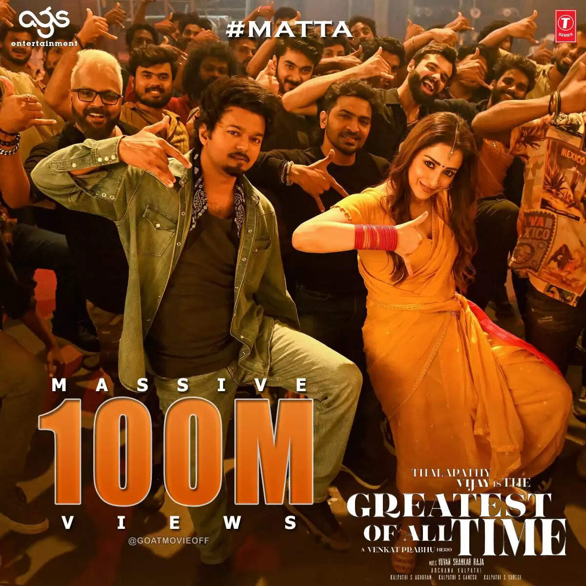 விஜய்யின் ‘தி கோட்’ திரைப்படத்தின் ‘மட்ட’ பாடல் யூடியூப்பில் 100 மில்லியன் பார்வைகளை கடந்து சாதனை படைத்துள்ளது.